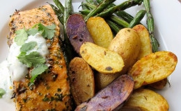 Charmoula is a flavorful herb and spice marinade used in Algerian, Moroccan and Tunisian cooking. Here it’s used to add a depth of flavor to the salmon, green beans and potatoes.