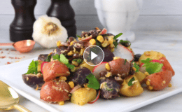 A quick and easy dairy-free potato salad packed with grilled corn, jalapeno, black beans, and avocado.