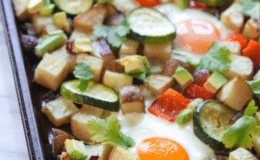 This One Pan Veggie Potato Breakfast Hash is a quick and hearty way to start your day. This dish features crispy russet potatoes, and is naturally gluten free and vegetarian!