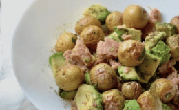 Creamy roasted potatoes are mixed with protein-packed tuna in olive oil, diced fresh avocado, and dill to provide the perfect post-workout fuel for any workout.